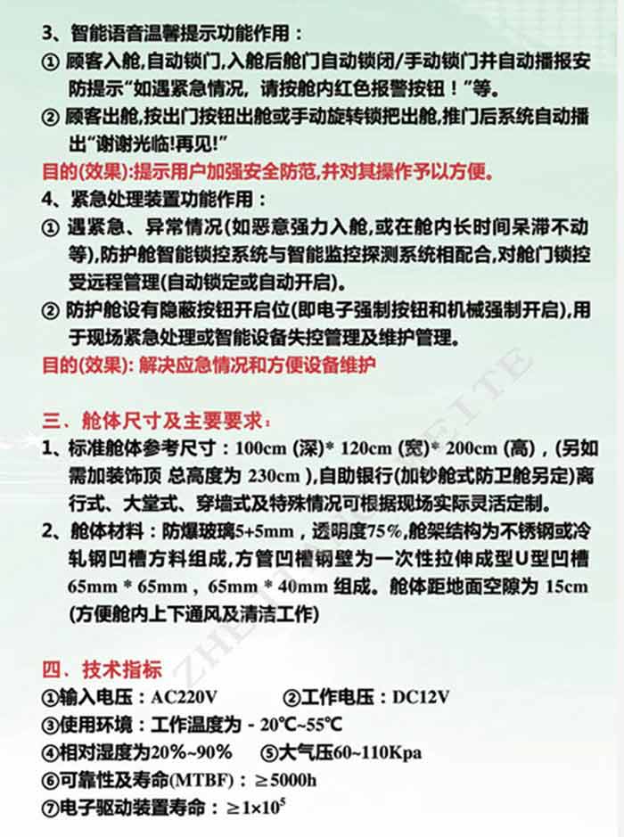 ATM机 智能防护舱产品根据文件要求生产规范如下(参考图)